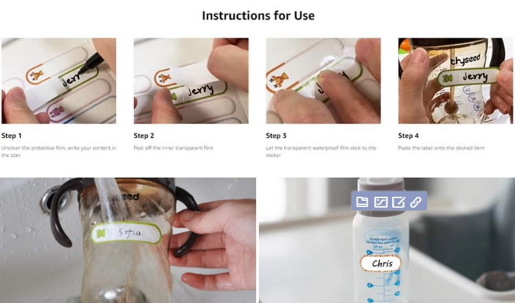Assorted Sizes & Colors Self-Laminating Self-Adhesive Logo Stickers Custom Write-On Kids Name Waterproof Bottle Labels